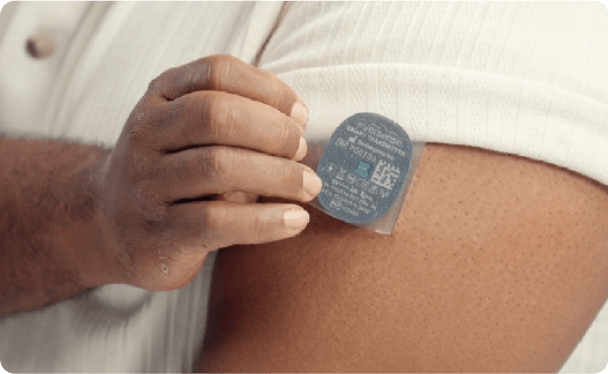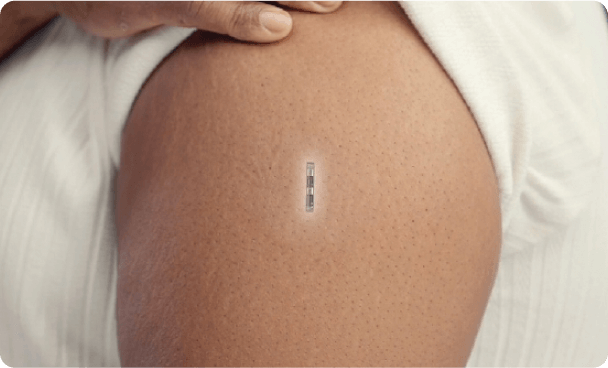 Sensor diminuto que se coloca bajo la piel y se mantiene seguro durante un año.