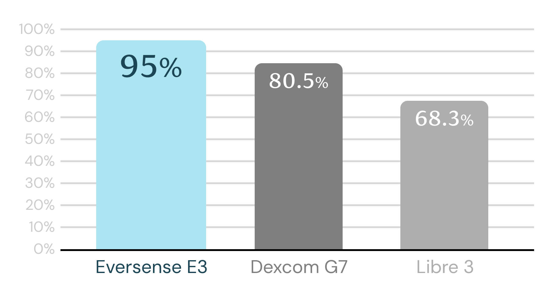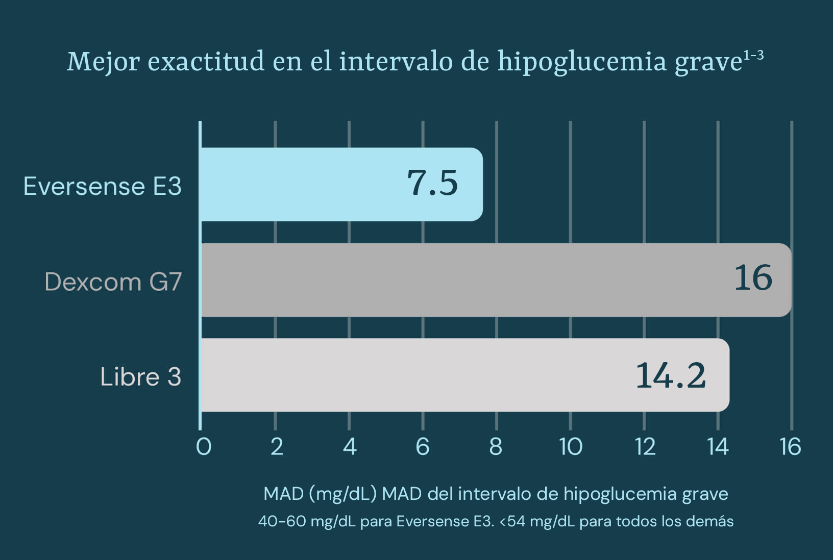 Eversense E3 proporciona una exactitud incomparable cuando más importa.1-3