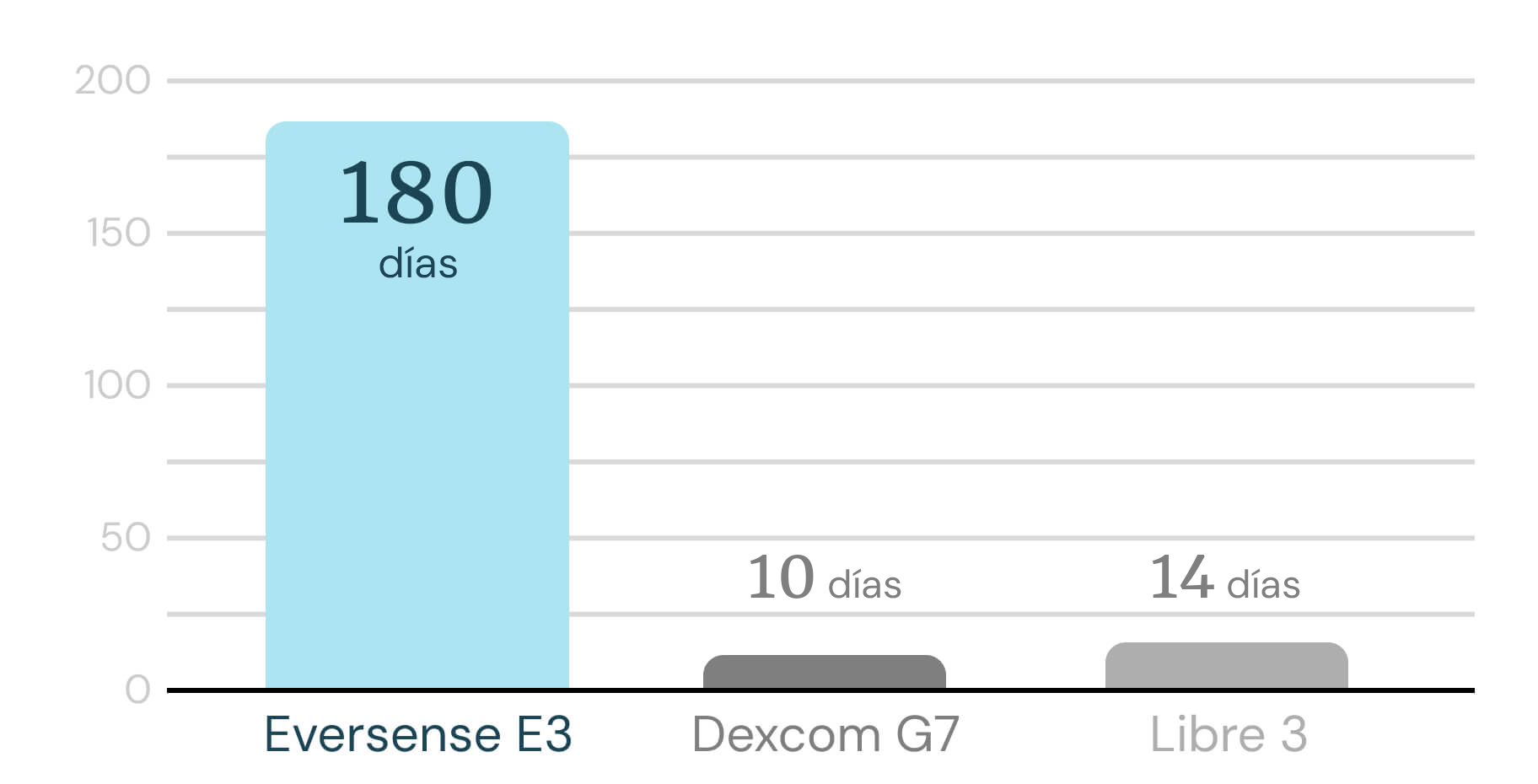 No deje que las interrupciones causadas por los MCGs de 7-14 días sean la razón por la que sus pacientes tienen lagunas en el uso. El sistema Eversense E3 le proporciona los datos que necesita y a sus pacientes la tranquilidad que se merecen.