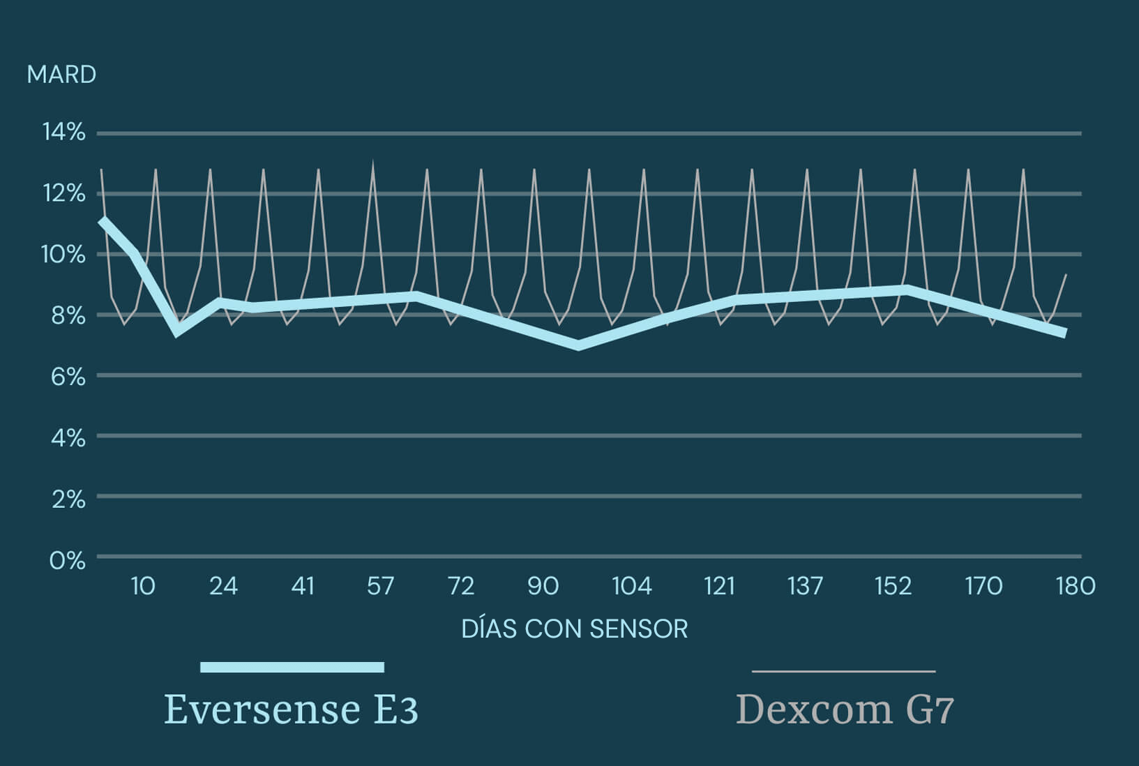 El 95 % de los sensores Eversense E3 sobreviven los 6 meses completos, lo que se traduce en menos interrupciones en la terapia de MCG.