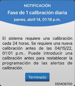 El sistema siempre le indicará el número de calibraciones necesarias al día para mantener la mejor exactitud para usted. Si el sistema necesita más de una sola calibración al día, entrará automáticamente en la fase de 2 calibraciones diarias y emitirá una alerta con 12 horas de antelación a la 2.ª calibración necesaria.