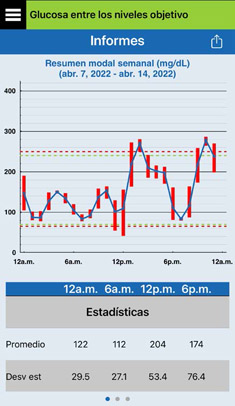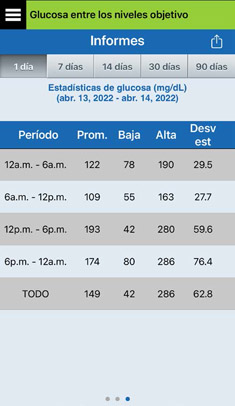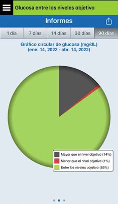 Acceda a los informes almacenados en la aplicación Eversense para comprender mejor el historial y los patrones de sus niveles de glucosa y aprenda a compartirlos fácilmente con su profesional de la salud.